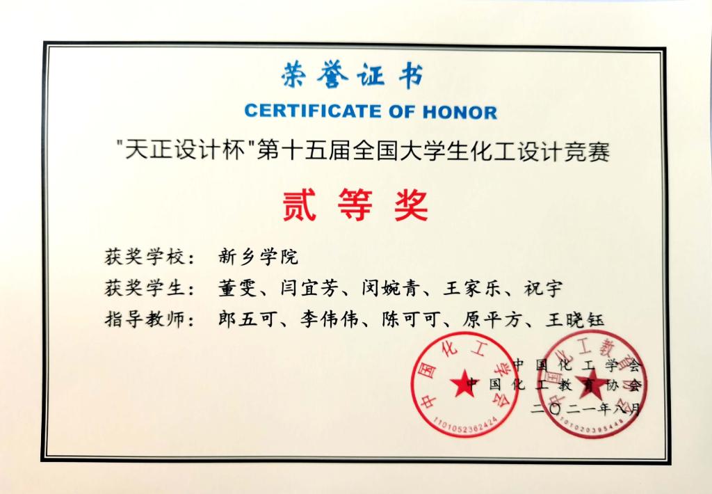 全国老员工化工设计竞赛为教育部全国性A类赛事,由中国化工学会和中国化工教育协会主办,是目前全国高校化工专业级别最高、参赛队伍最多、影响力最大、最具挑战性的赛事活动,已成为高校培养员工创新思维、工程能力和综合素质的重要平台。本次获奖是对团队成员前期努力的肯定,同时对公司化学工程与工艺专业今后进一步推进专业建设,完善实践教学体系,提升培养员工解决复杂工程问题能力具有重要意义。