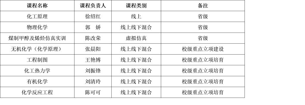 根据《河南省教育厅关于公布第二批河南省一流本科课程认定结果的通知》(教高〔2021〕174号)以及《tyc122ccvip2021年校级一流本科课程评审结果公示》,公司《化工原理》、《物理化学》、《煤制甲醇及烯烃仿真实训》3门课程被认定为第二批河南省一流本科课程,《无机化学(化学原理)》、《工程制图》、《化工热力学》、《有机化学》、《化学反应工程》获批校级一流本科课程立项建设。