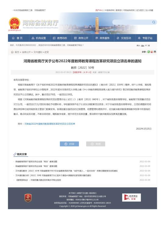 根据河南省教育厅《关于组织申报2022年度教师教育课程改革课题研究项目的通知》(教办师〔2021〕339号)精神,经个人申报、高校推荐、省教育厅组织评审和公示等程序,公司教师王辉申报的课题《师范类专业认证视域下化学专业课程思政的内涵建设与实践》、毛克乐申报的课题《专业认证背景下师范专业员工信息素养测评机制与培养策略研究》分别获批河南省2022年度教师教育课程改革研究项目。