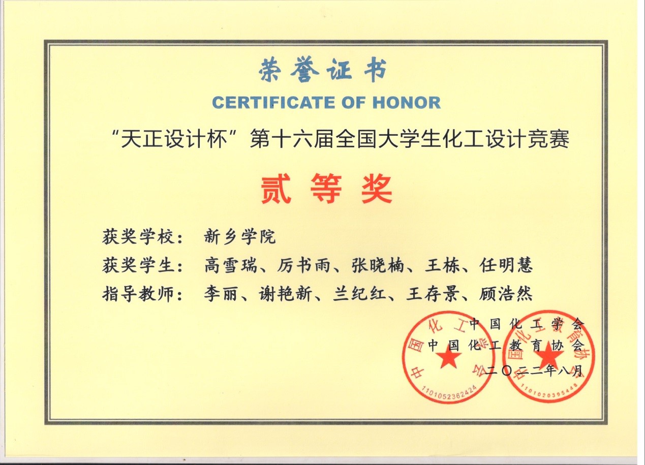 本次大赛的主题是《为某大型化工企业设计一座1,4-丁二醇生产分厂或为现有的1,4-丁二醇生产分厂设计技术改造方案》,要求员工综合运用所学的化学工程先进技术,设计出一座具有自主知识产权的现代化工厂,具体包括工艺设计、管道设计、自控设计、设备设计选型、厂区布置、经济概算、可行性分析、安全与环境评价等近二十余项子项目。竞赛共吸引了天津大学、浙江大学等全国415所高校、2939支队伍、1.4万余名员工参赛。tyc122ccvip组织5支队伍共25人参加了竞赛,在李丽、谢艳新、兰纪红、王存景、顾浩然5位老师的指导下,经过专项评审和线上答辩展示,高雪瑞、厉书雨、张晓楠、王栋、任明慧5位同学组成的“啊对对对你说的都”队最终获得全国二等奖。