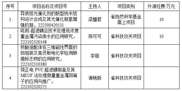 依据省科技厅发布的《关于下达河南省二○二二年科技发展计划的通知》,公司共获立项4项,其中省自然科学基金面上项目1项,省科技攻关项目3项。