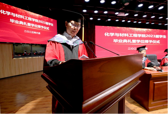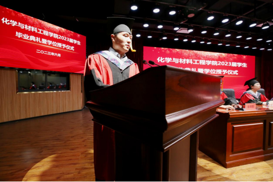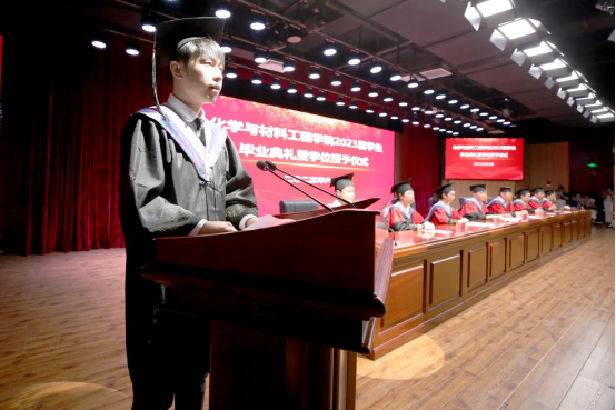 首先,全体师生庄严肃立,奏唱国歌。郭娇宣读省级优秀毕业生和校级优秀毕业生的表彰决定。与会领导和教师代表为省级优秀毕业生、校级优秀毕业生颁发荣誉证书。教师代表原平方和在校员工代表2022级化学实验班贺雨欣对毕业学子表达美好的祝福和衷心的祝愿。优秀毕业生代表2019级化学班姜吉磊同学表示要永葆求知探索的能力,去坚持、去实践、去追求。