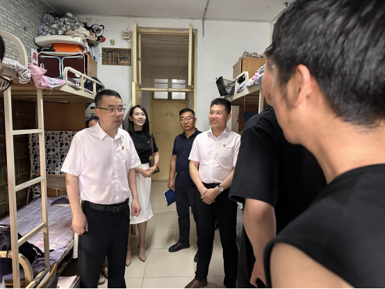 随后,张银堂走访了E06号楼毕业生寝室,了解毕业生现实诉求、对公司的意见建议,并勉励同学们继续不骄不躁、踏实刻苦、勇敢奔赴梦想。