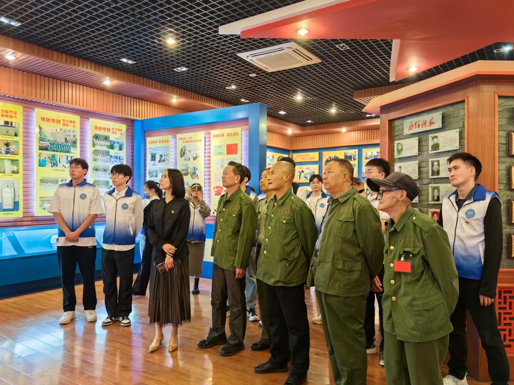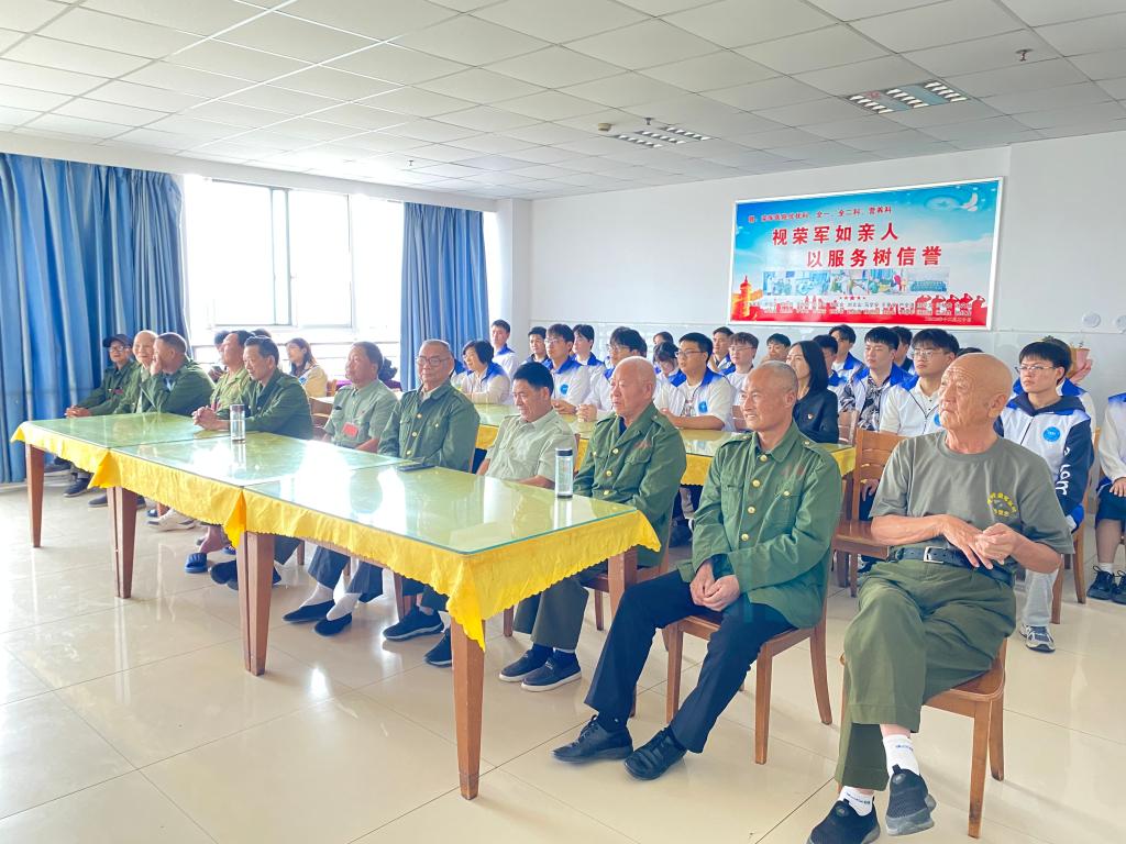一寸山河一寸血,一抔热土一抔魂。抗战老兵靳为敏同志为大家讲述了他和战友当年在战场上浴血奋战的故事,讲到“猫耳洞”条件艰苦,三个月不换洗衣物,时刻准备作战时,靳爷爷激动地唱起了“战友啊战友,亲如兄弟......我们要并肩战斗夺取胜利,夺取胜利。”并鼓励大家“我没有读过太多书,小时候也没有读书的条件。当年,我们为了保卫祖国而浴血奋战。如今,你们身在和平年代,更应为建设我们的祖国而努力读书。”李彦霓也代表在座党员们表示“在重阳节来临之际,祝愿我们的荣军们身体健康。致敬革命先辈,不负老一辈所托,新时代员工要努力学习专业课,铭记历史,把革命抗战精神和红色基因传下去”。慰问演出后,退伍抗战老兵和全体党员师生共同参观了荣军医院院史馆,一张张照片,一件件实物、一个个故事,使在场的每一个人深刻感受到那段艰苦奋斗的峥嵘岁月。