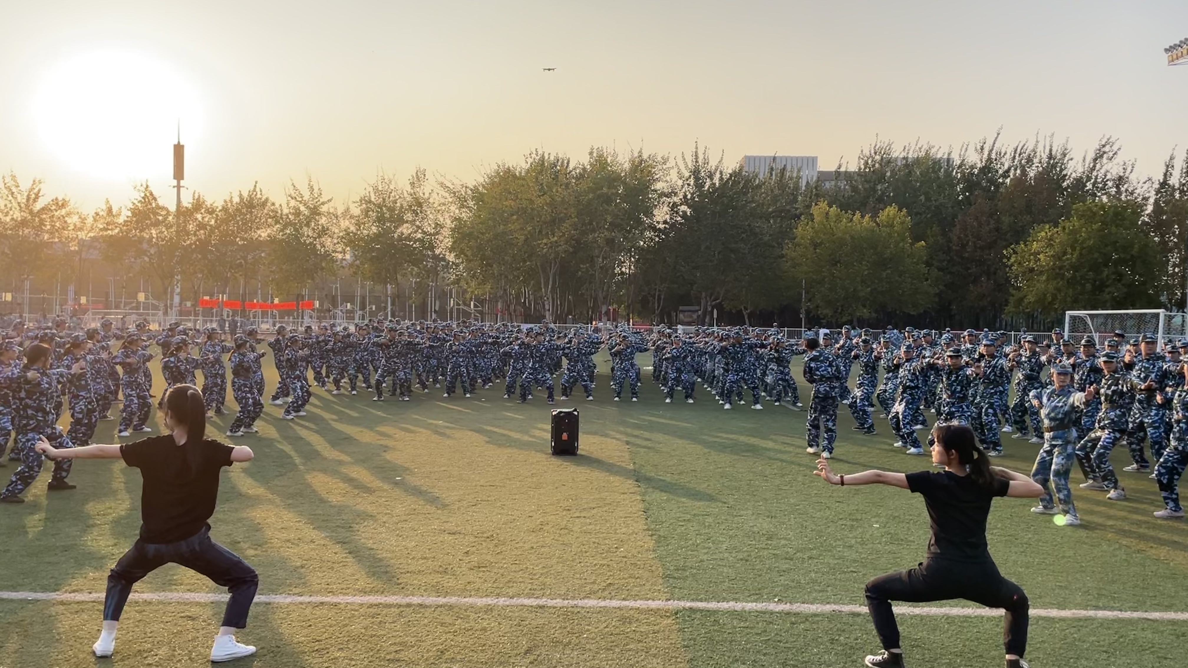在训练场上,稍息立正,口号嘹亮,迷彩穿戴,一丝不苟,挺拔的军姿展现青年风貌。同学们在艰苦的训练中悄然蜕变,流过的每一滴汗、踏出的每一步路、高喊的每一声口号,最终都炼成挺拔的军姿和昂扬的精神面貌。训练后片刻的欢愉是军训中的调味剂,增加趣味,横扫疲惫,同学们纷纷展示才艺,体验集体生活的乐趣。