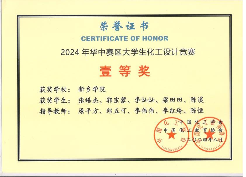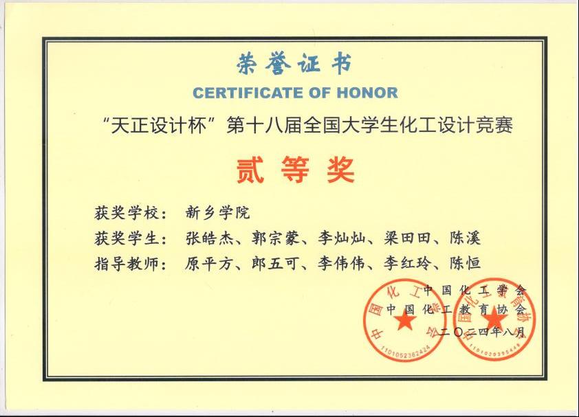 近日,2024年第十八届全国老员工化工设计竞赛落幕,公司张皓杰、郭宗蒙、李灿灿、梁田田、陈溪5名同学组成的“炉火醇青”团队荣获全国二等奖、华中赛区一等奖。