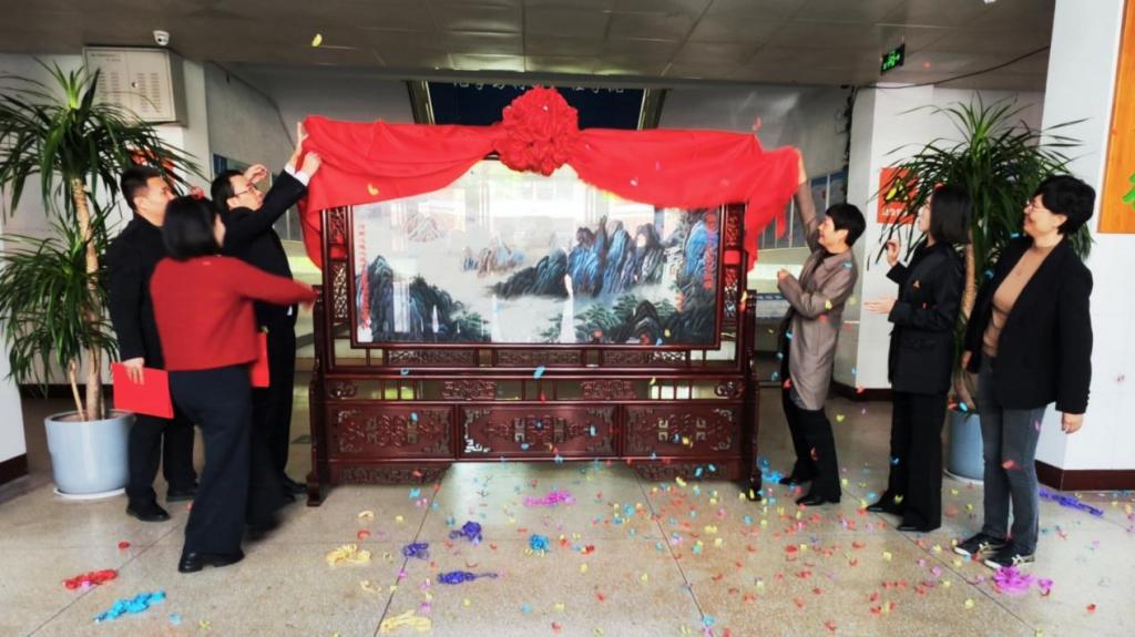 张银堂和张秀蕊共同为实木屏风揭幕,张银堂向张秀蕊颁发了捐赠证书。
